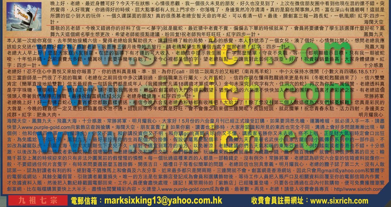 041期:六合皇红字【九祖七宗】暗码《04 17 32 48》