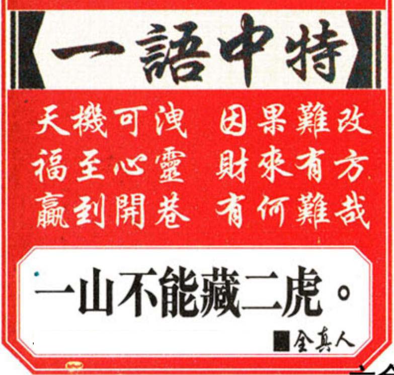 一語中特:【一山不能藏二虎】
