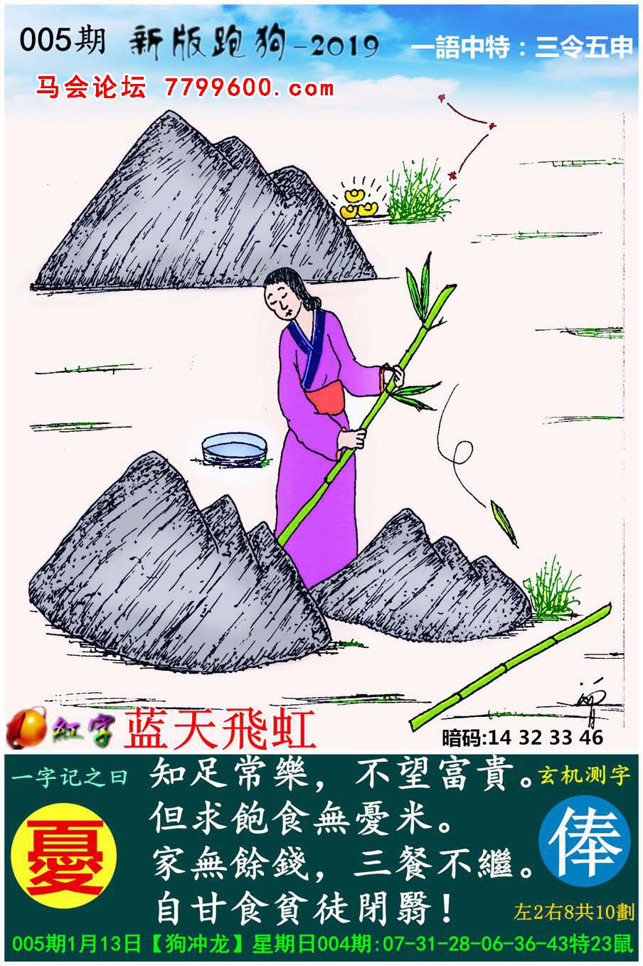 005期:新版跑狗一字記之曰【憂】玄機測字:《俸》