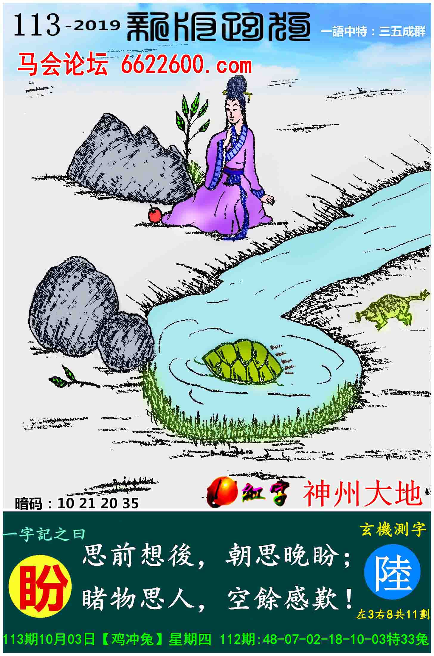 主题 : 113期:新版跑狗一字記之曰【盼】玄機測字:《陸》