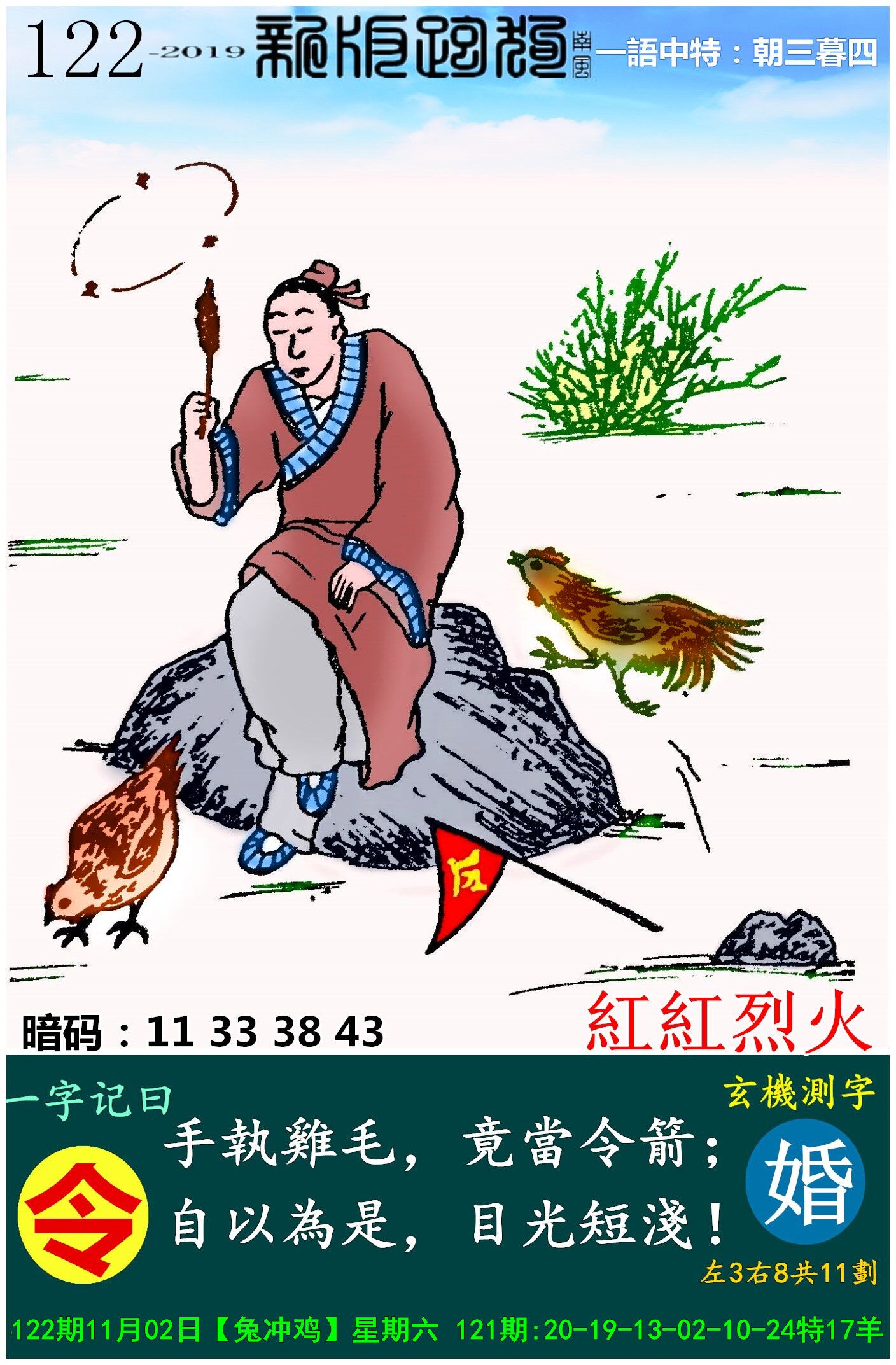 122期:新版跑狗一字記之曰【令】玄機測字:《婚》