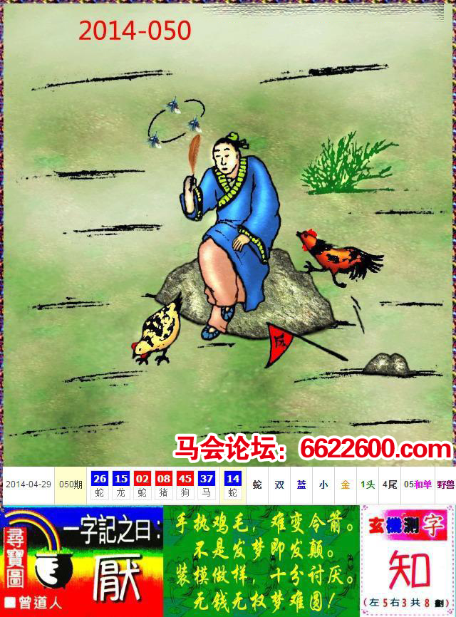 主题 : 122期:新版跑狗一字記之曰【令】玄機測字:《婚》