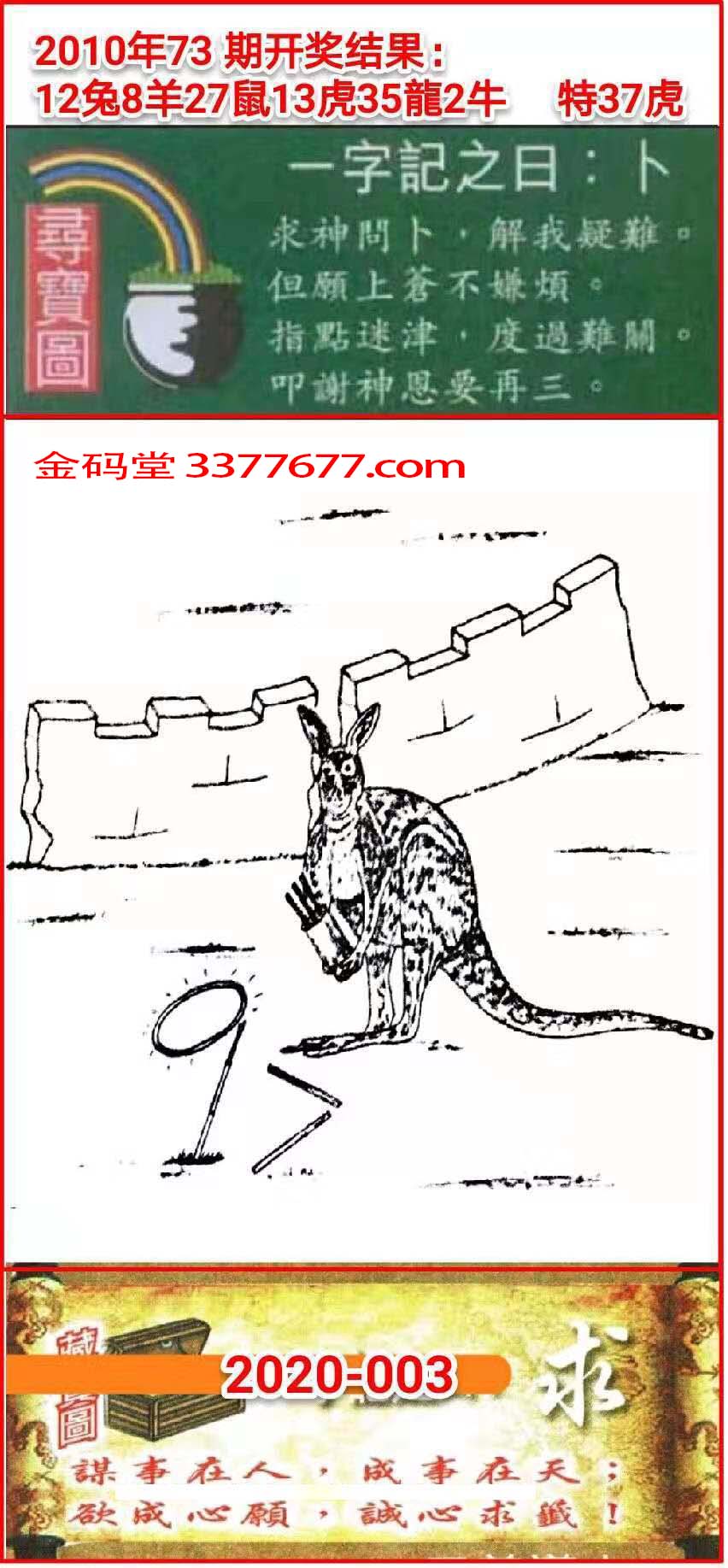 003期新版跑狗一字記之曰:【求】