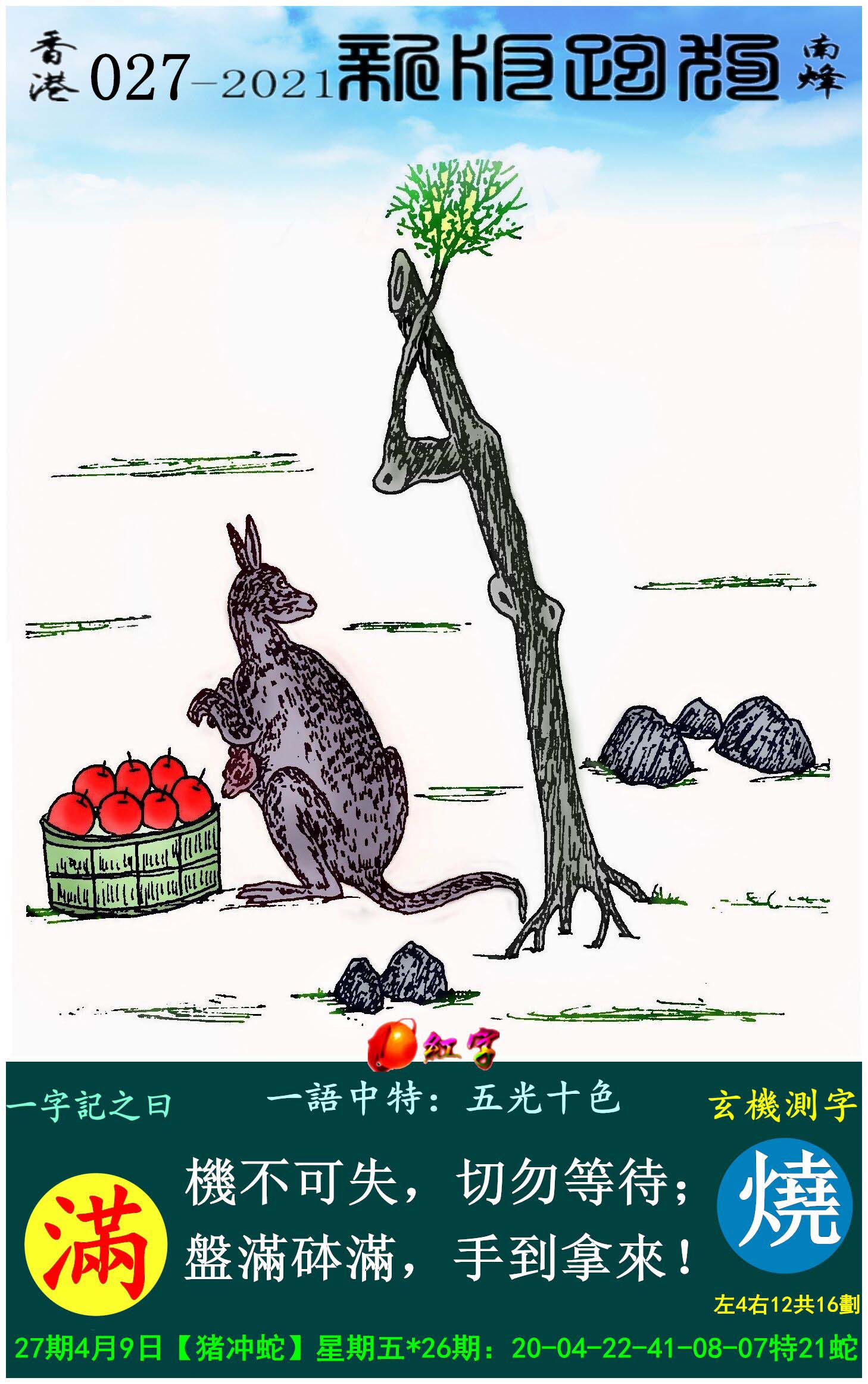 027期新版跑狗一字記之曰:【滿】