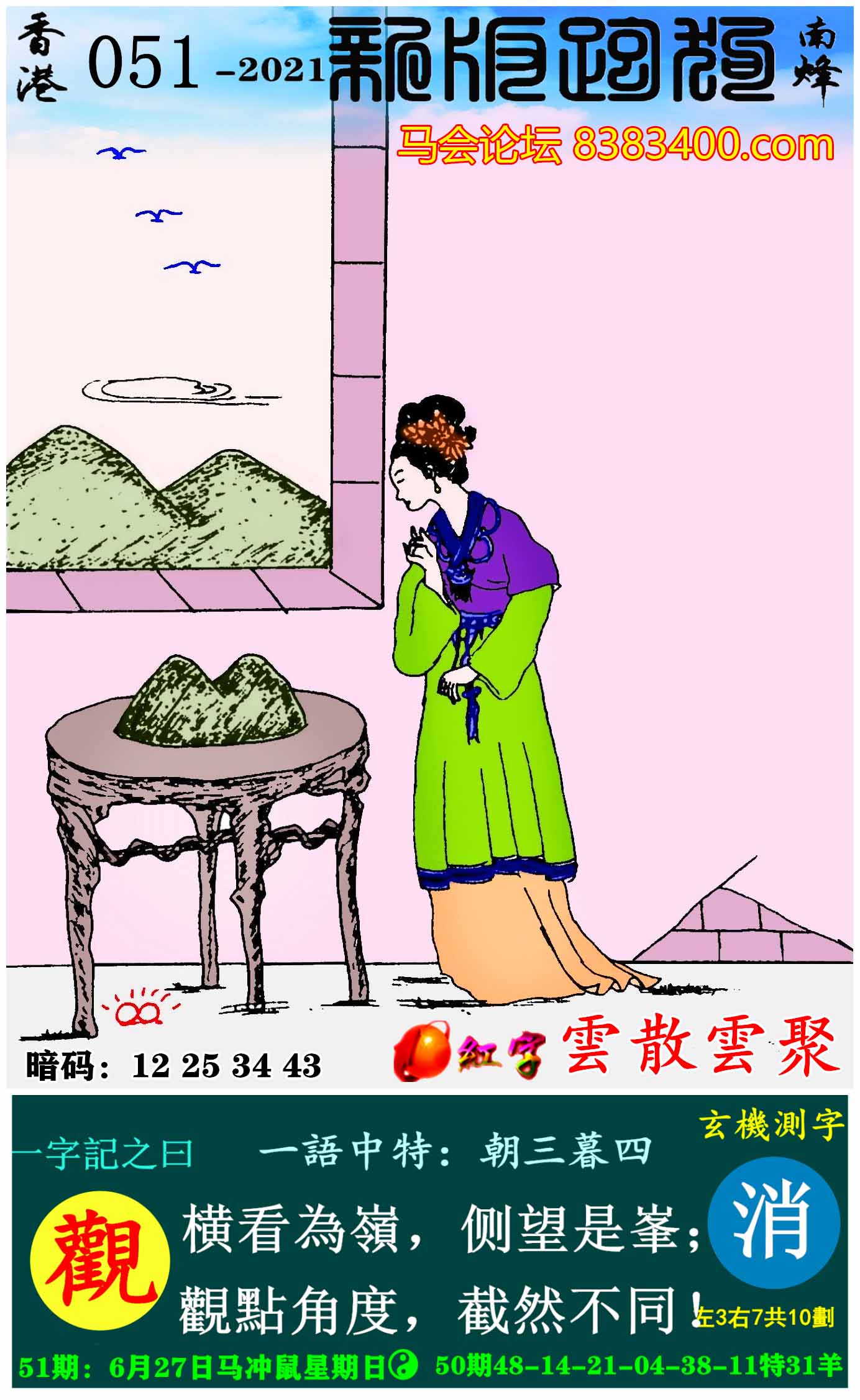 主题 : 051期:新版跑狗一字記之曰【観】玄機測字:《消》