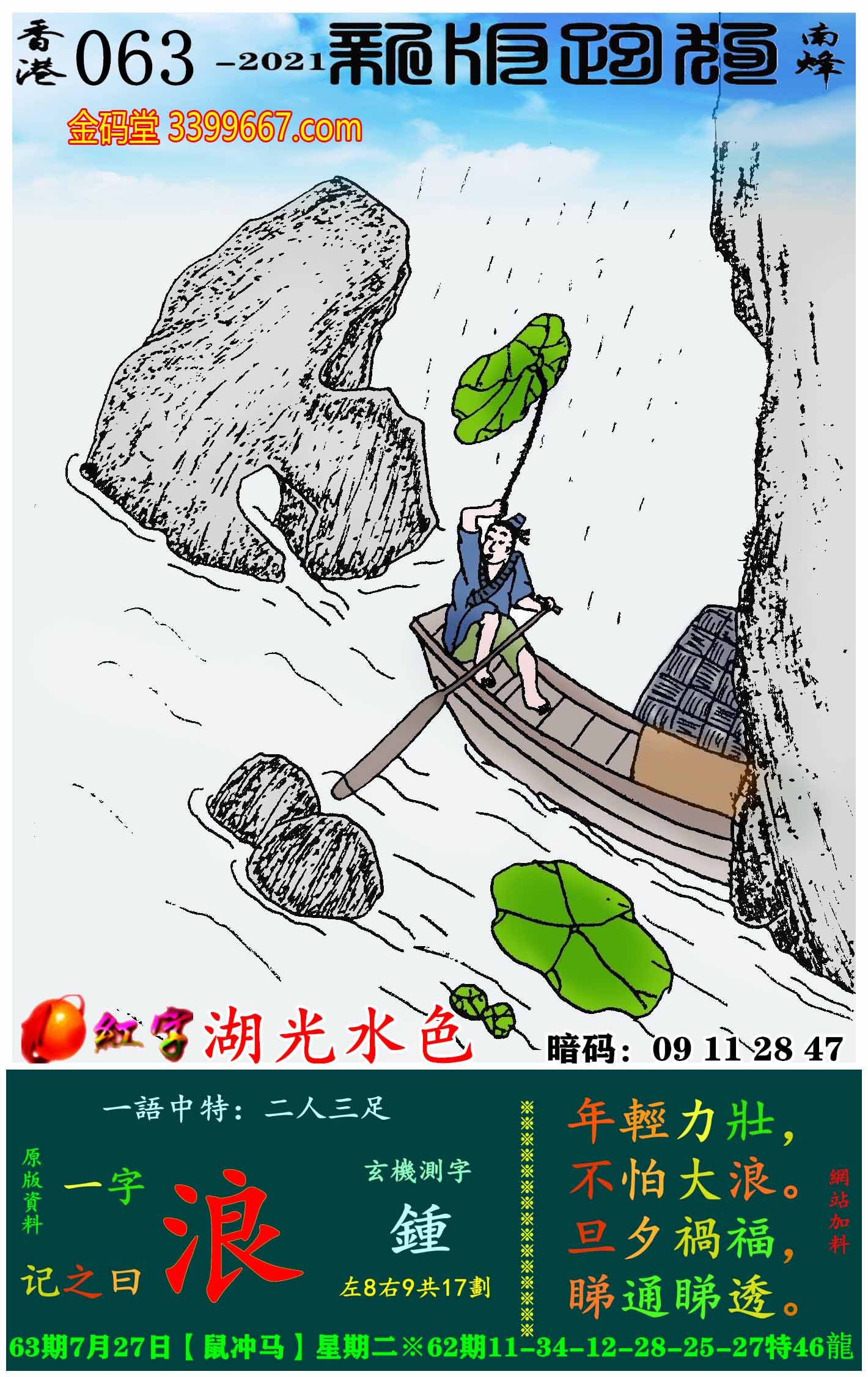 063期:新版跑狗一字記之曰【浪】玄機測字:《鍾》