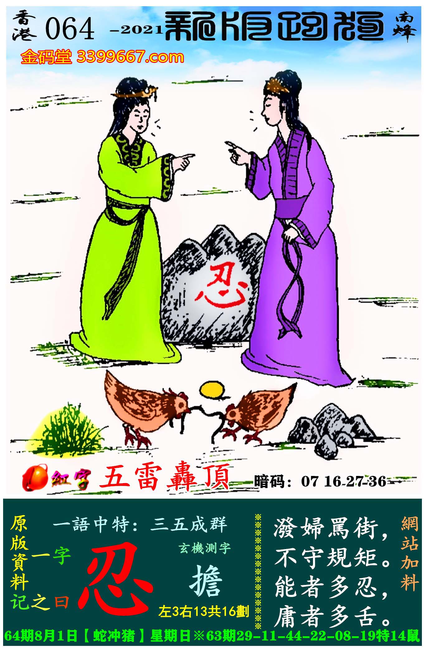 064期新版跑狗一字記之曰:【忍】