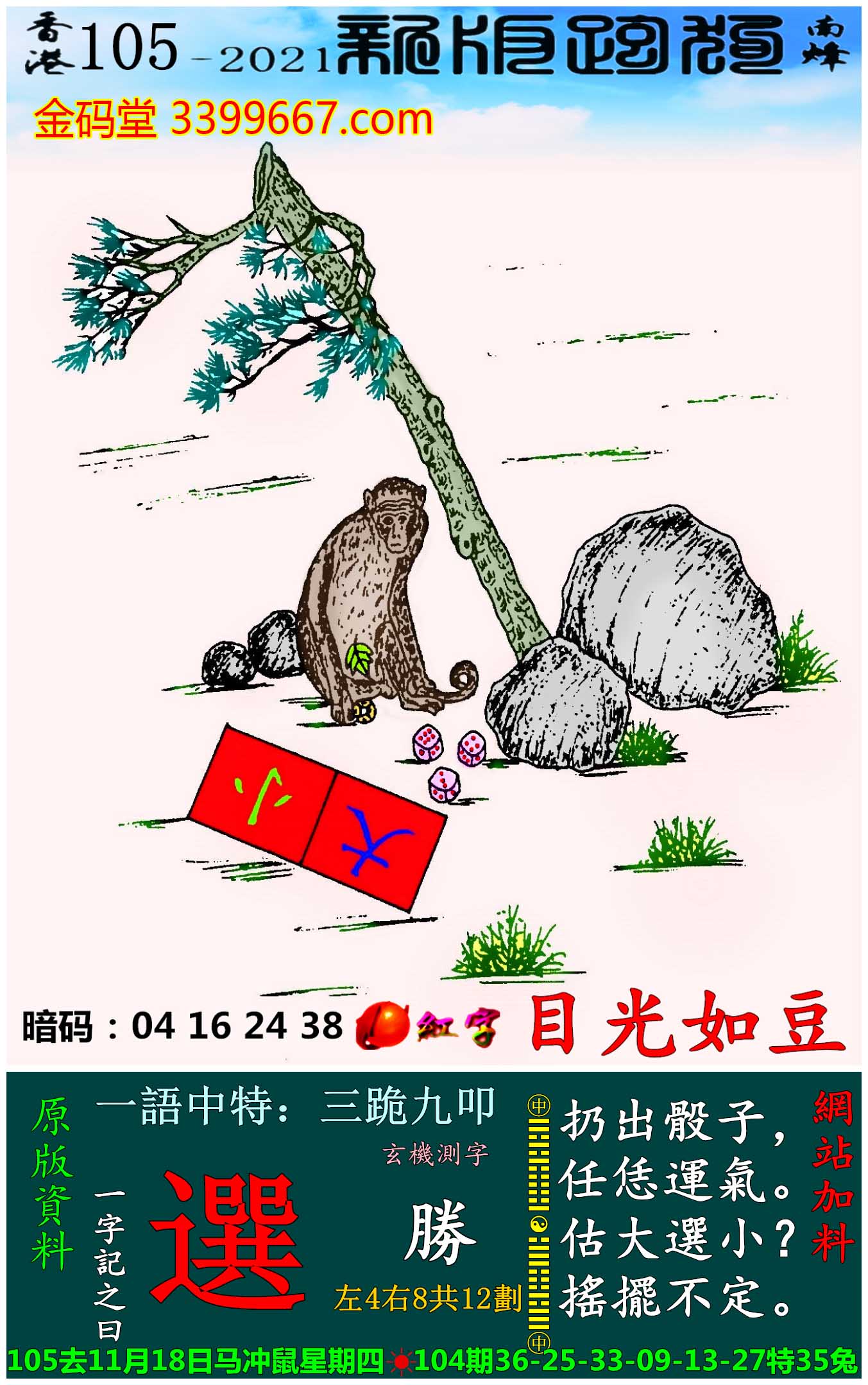 主题 : 105期:新版跑狗一字記之曰【選】玄機測字:《勝》