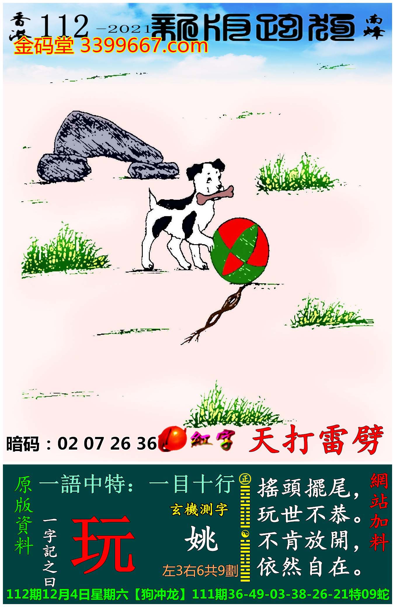 112期新版跑狗一字記之曰:【玩】
