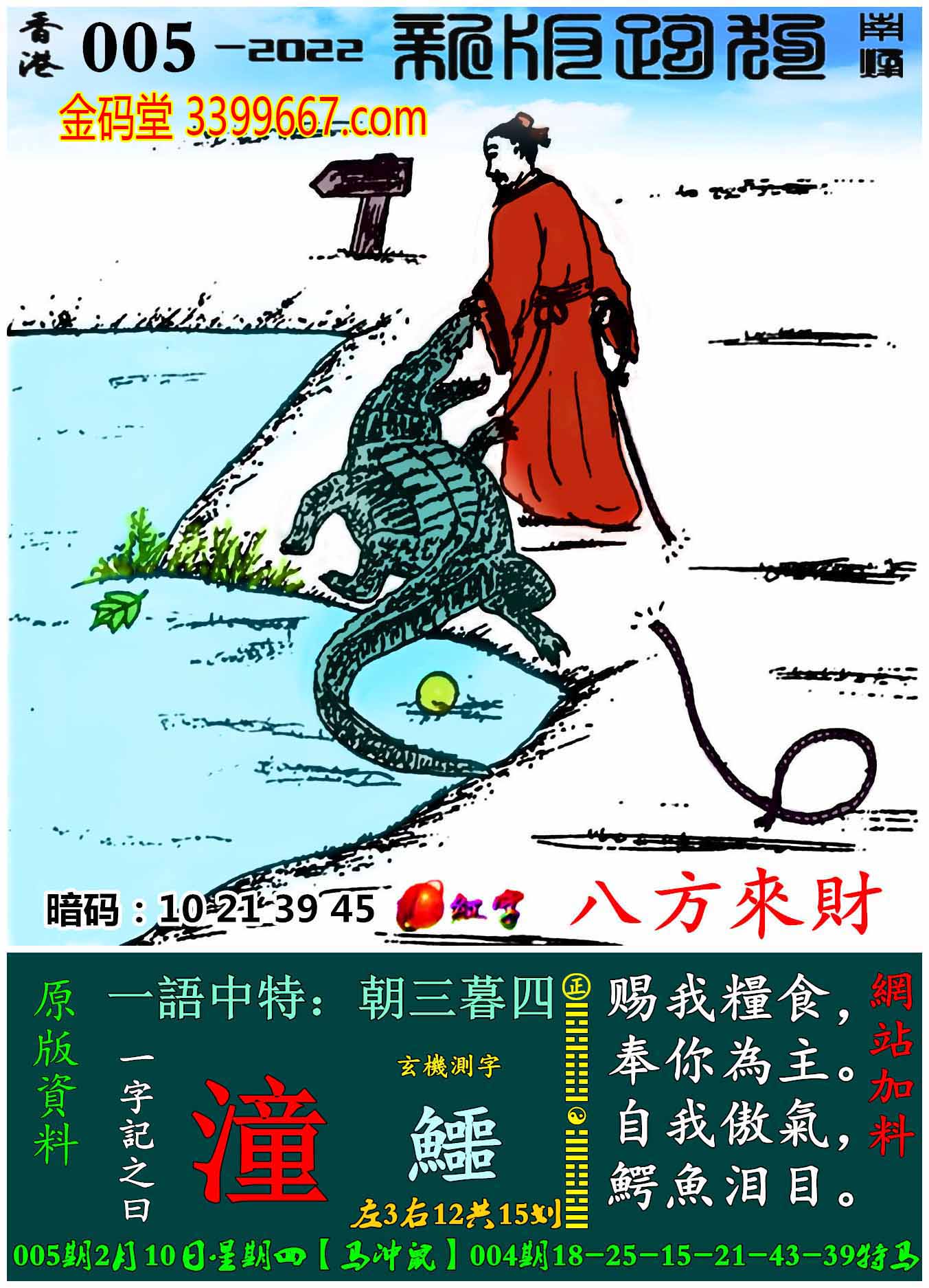 005期:新版跑狗一字記之曰【潼】玄機測字:《鱷》