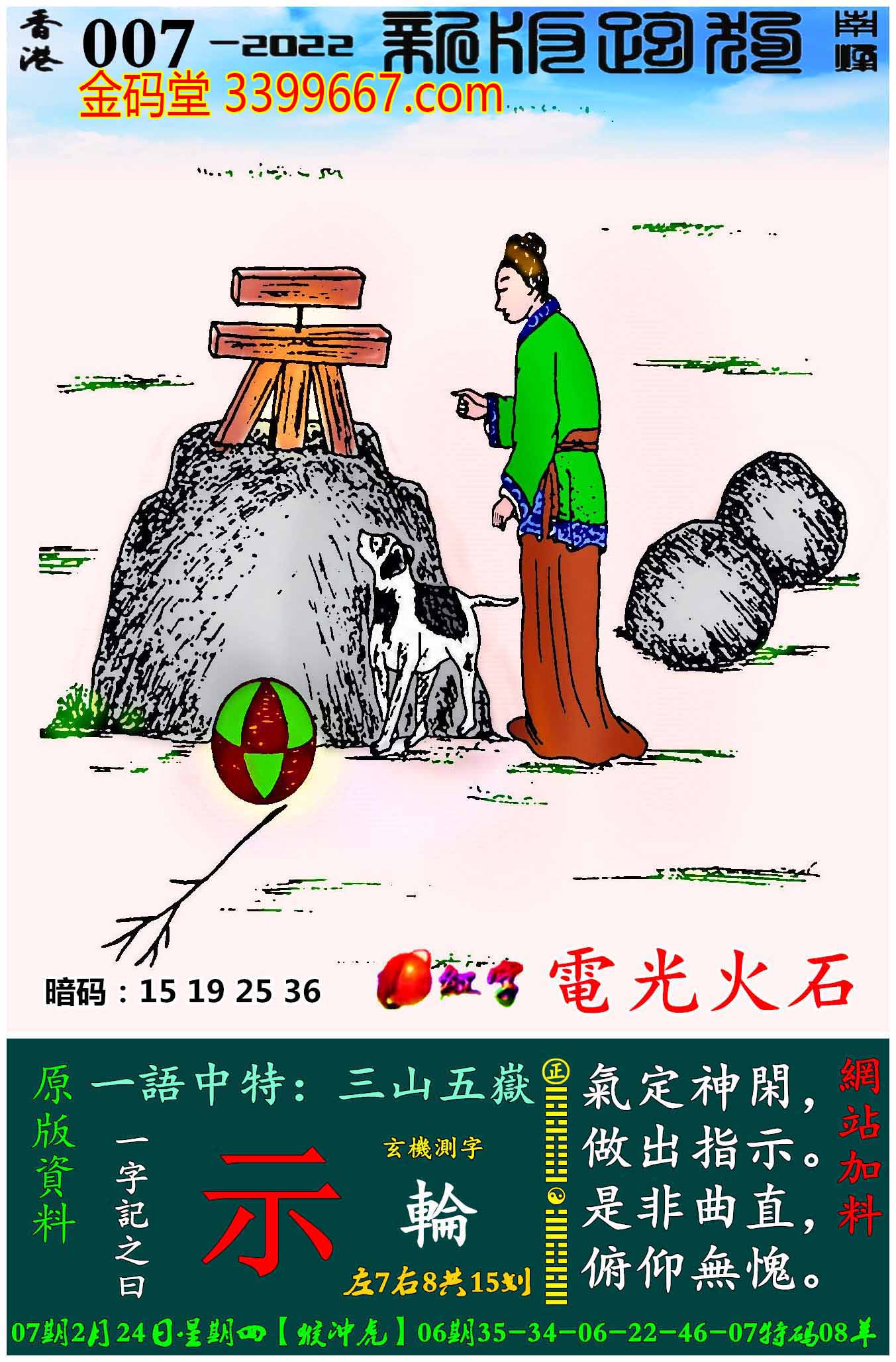 007期:新版跑狗一字記之曰【示】玄機測字:《輪》