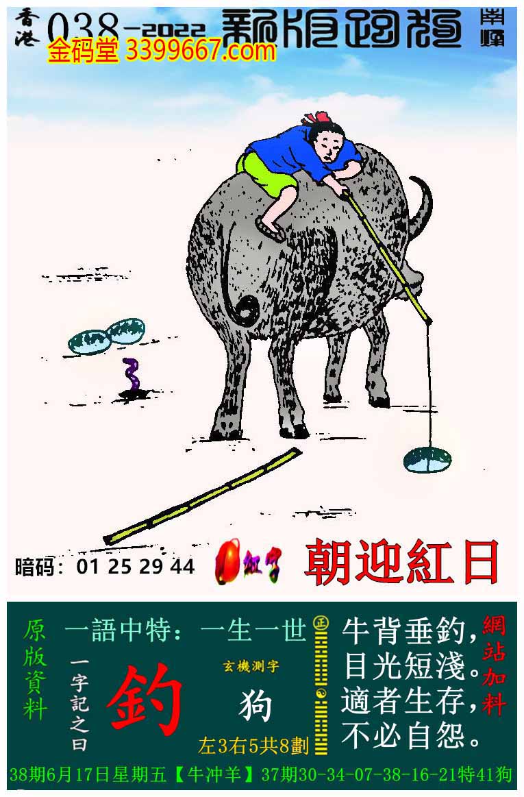 038期新版跑狗一字記之曰:【釣】
