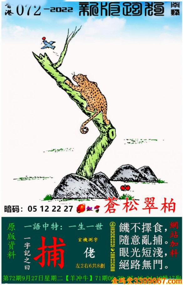 072期:新版跑狗一字記之曰【捕】玄機測字:《佬》