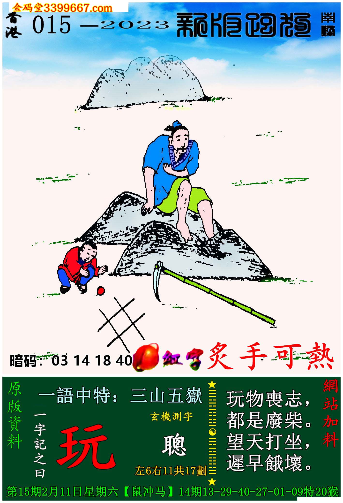 015期:新版跑狗一字記之曰【玩】玄機測字:《聰》
