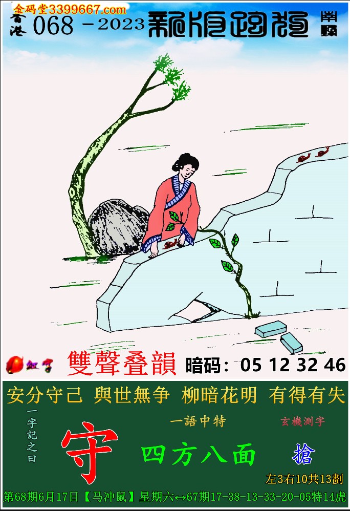 068期新版跑狗一字記之曰:【守】
