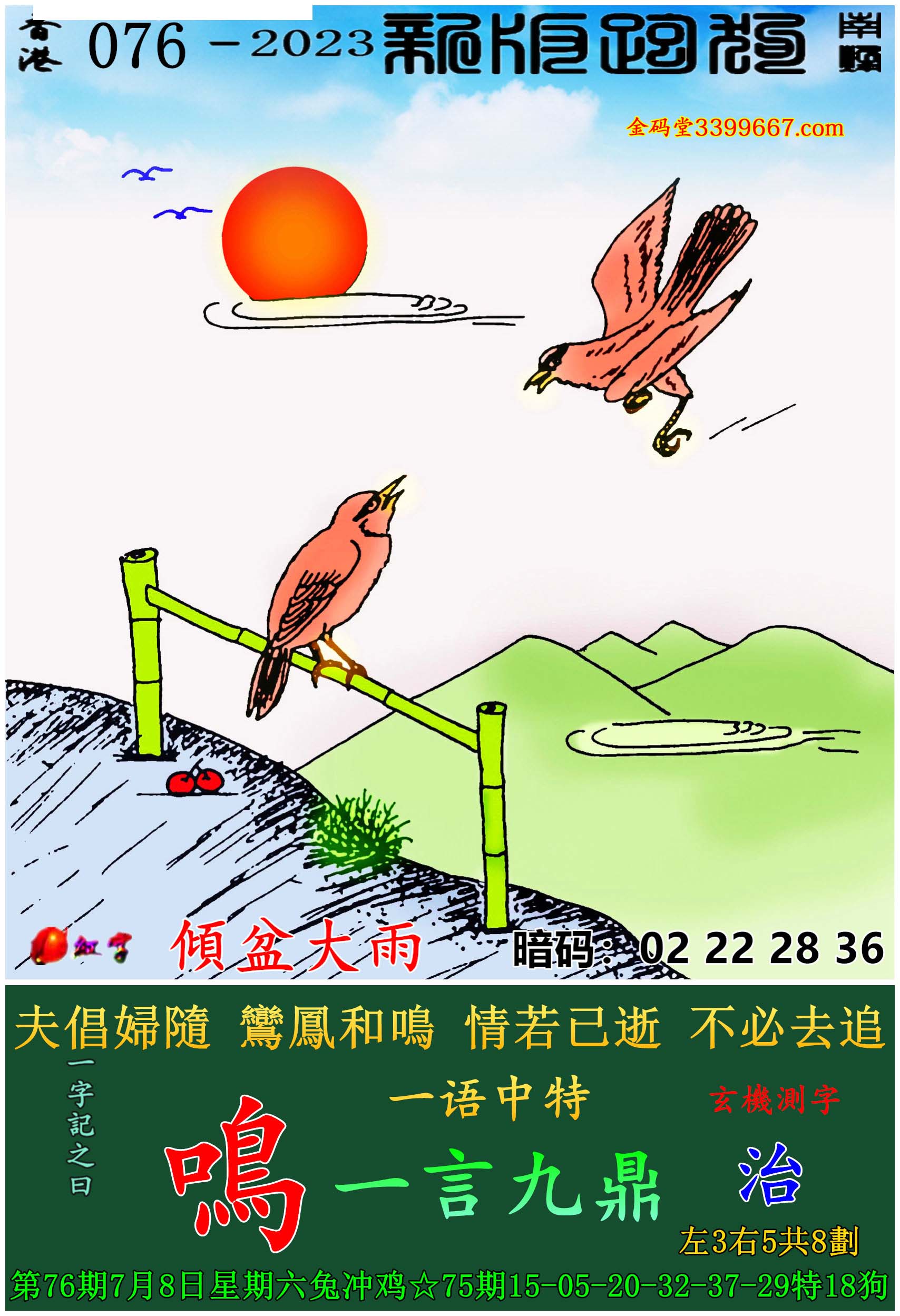 076期新版跑狗一字記之曰:【鳴】