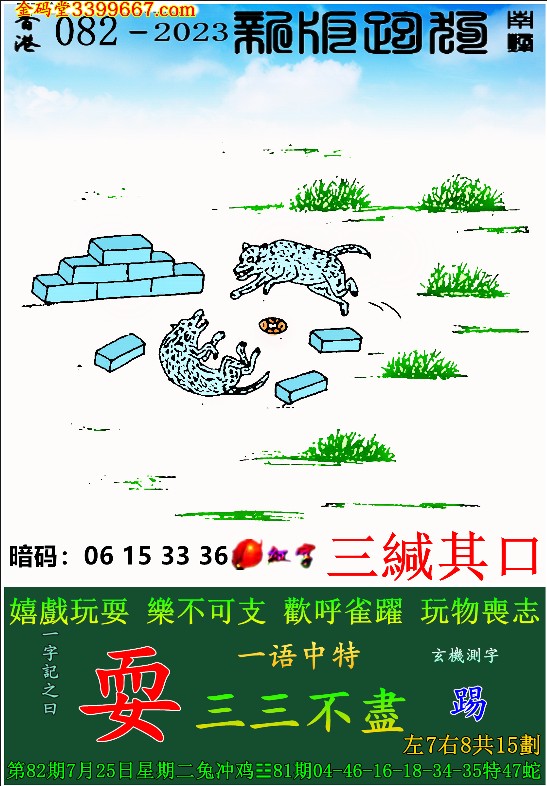 082期:新版跑狗一字記之曰【耍】 玄機測字:《踢》