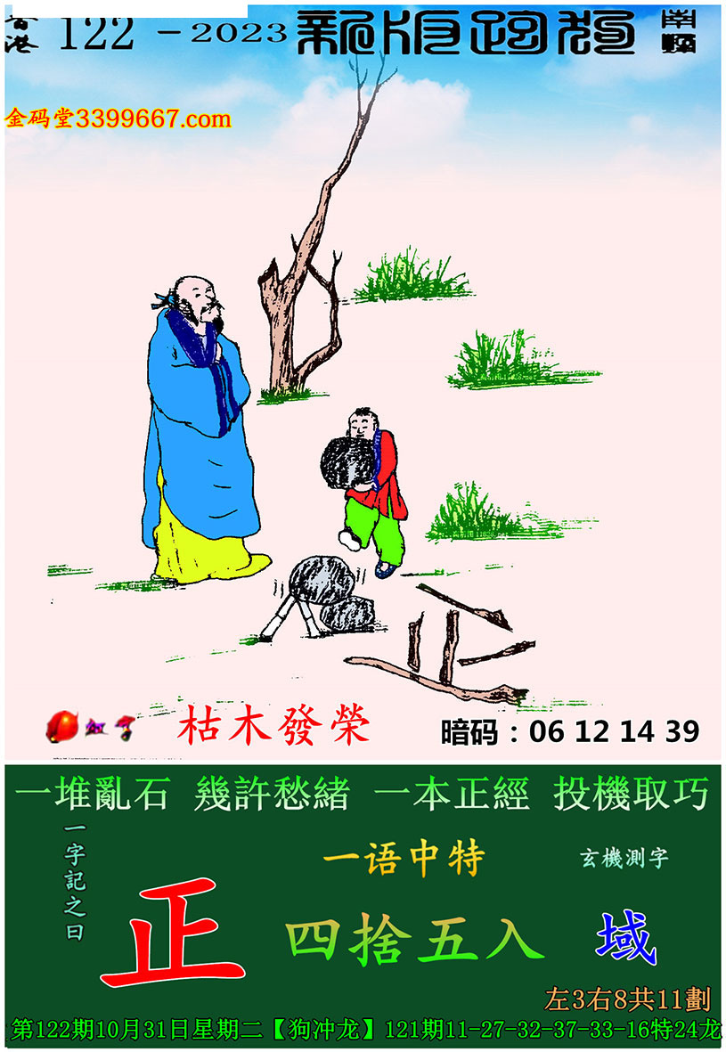 主题 : 122期:新版跑狗一字記之曰【正】玄機測字:《域》