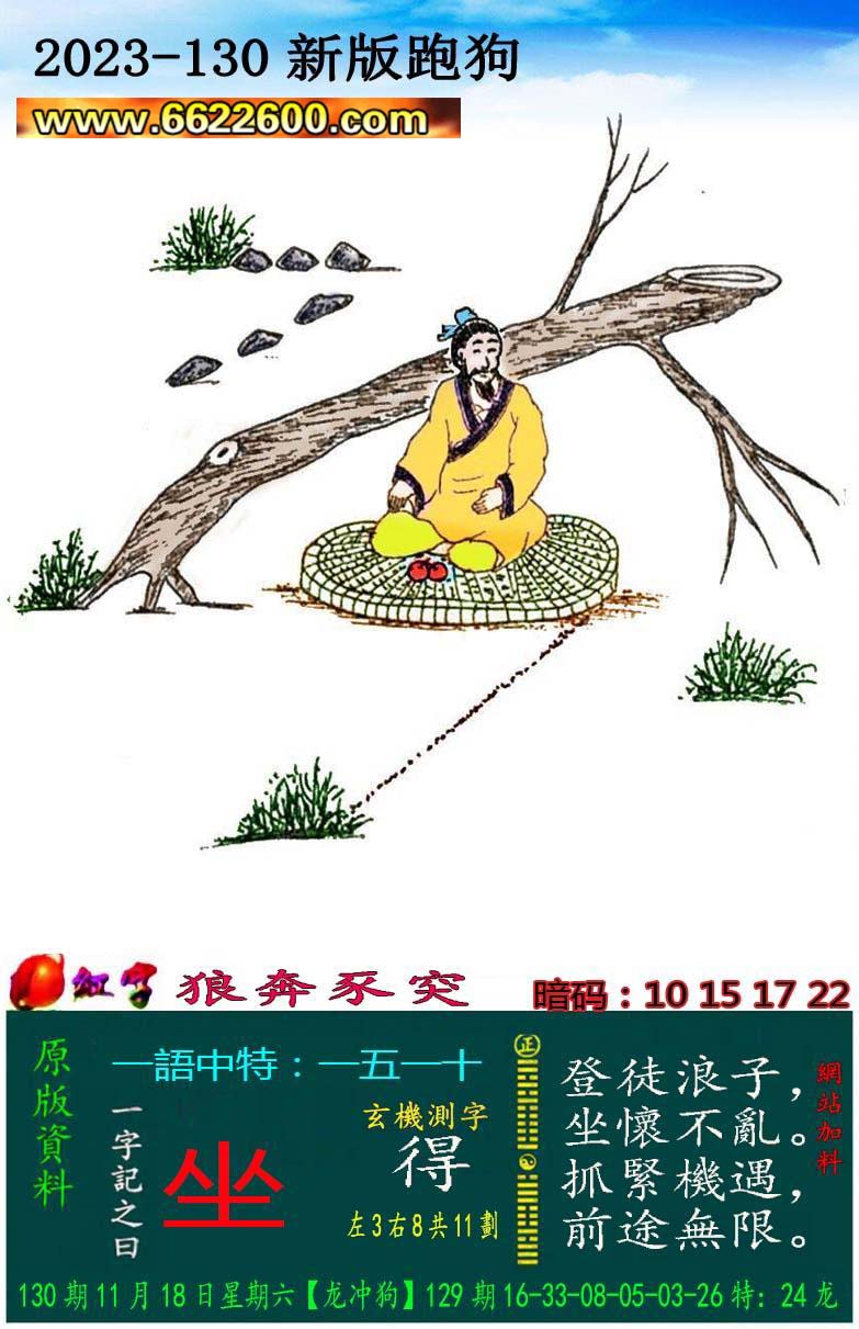 130期新版跑狗一字記之曰:【坐】