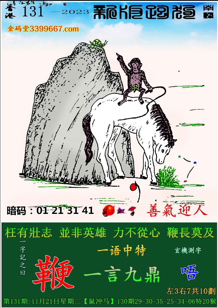 131期:新版跑狗一字記之曰【鞭】 玄機測字:《唔》