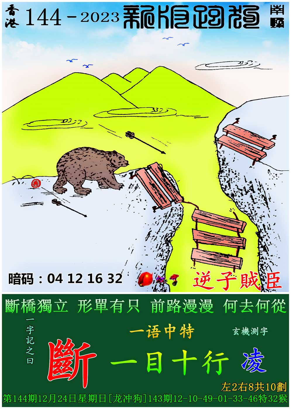 主题 : 144期:新版跑狗一字記之曰【斷】 玄機測字:《凌》