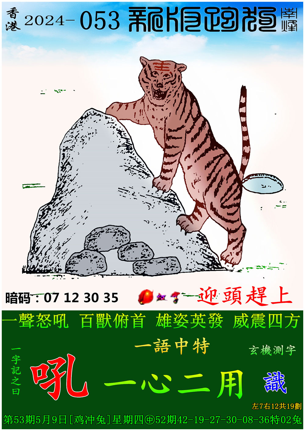 053期:新版跑狗一字記之曰【吼】 玄機測字:【識】