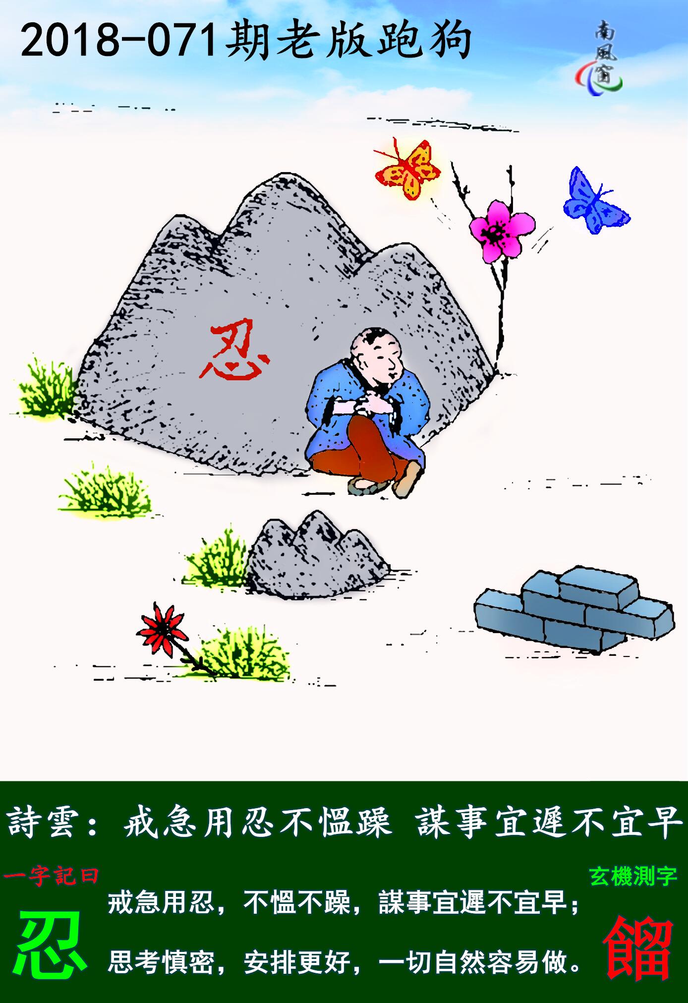 071期:老版跑狗一字記之曰:【忍】玄機測字《餾》