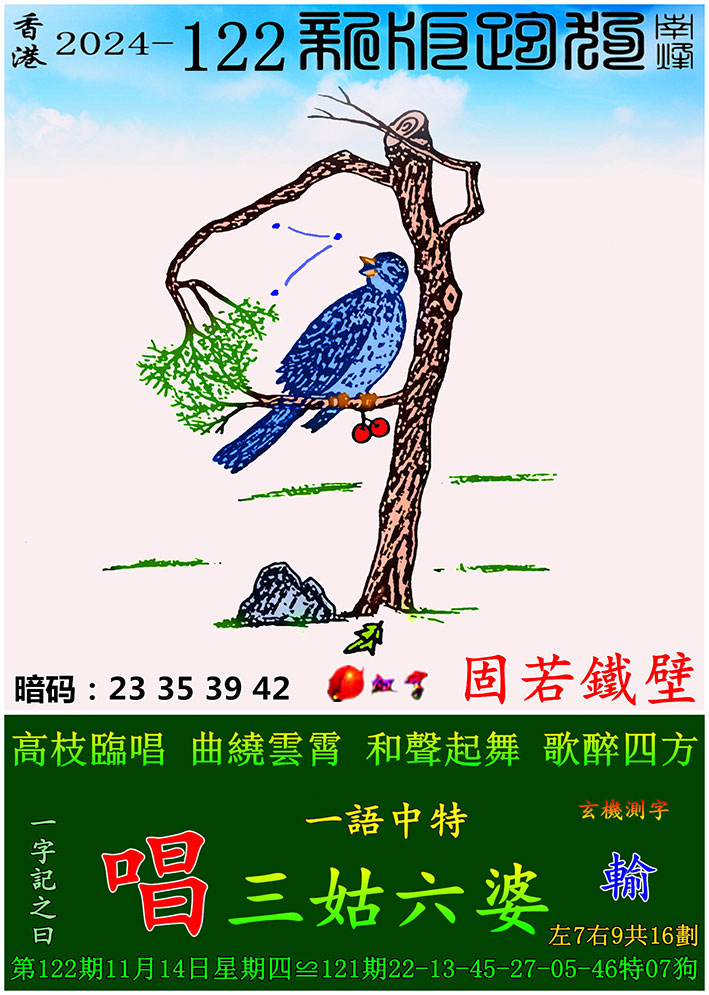 主题 : 122期:新版跑狗一字記之曰【唱】 玄機測字:【輸】