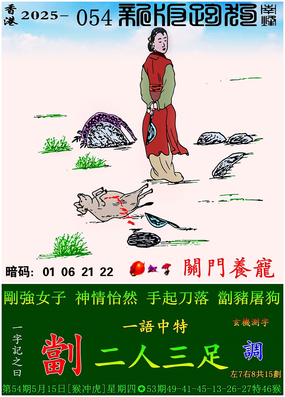 054期新版跑狗一字記之曰:【劏】