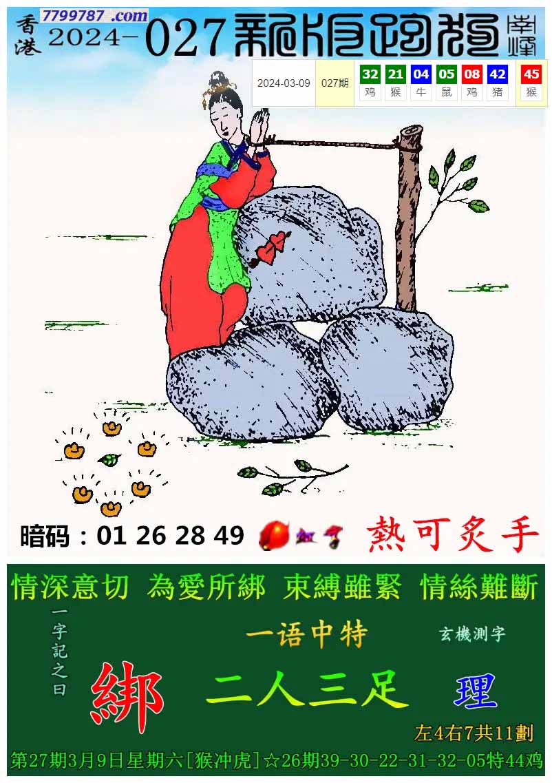091期:新版跑狗一字記之曰【縛】 玄機測字:【諒】