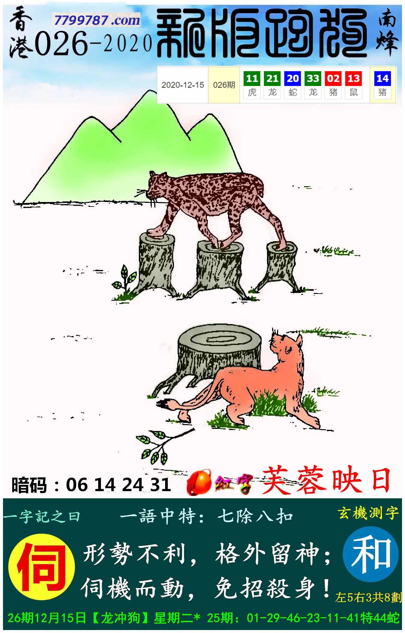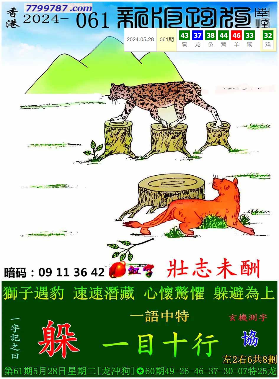 001期:新版跑狗一字記之曰【避】 玄機測字:【朝】