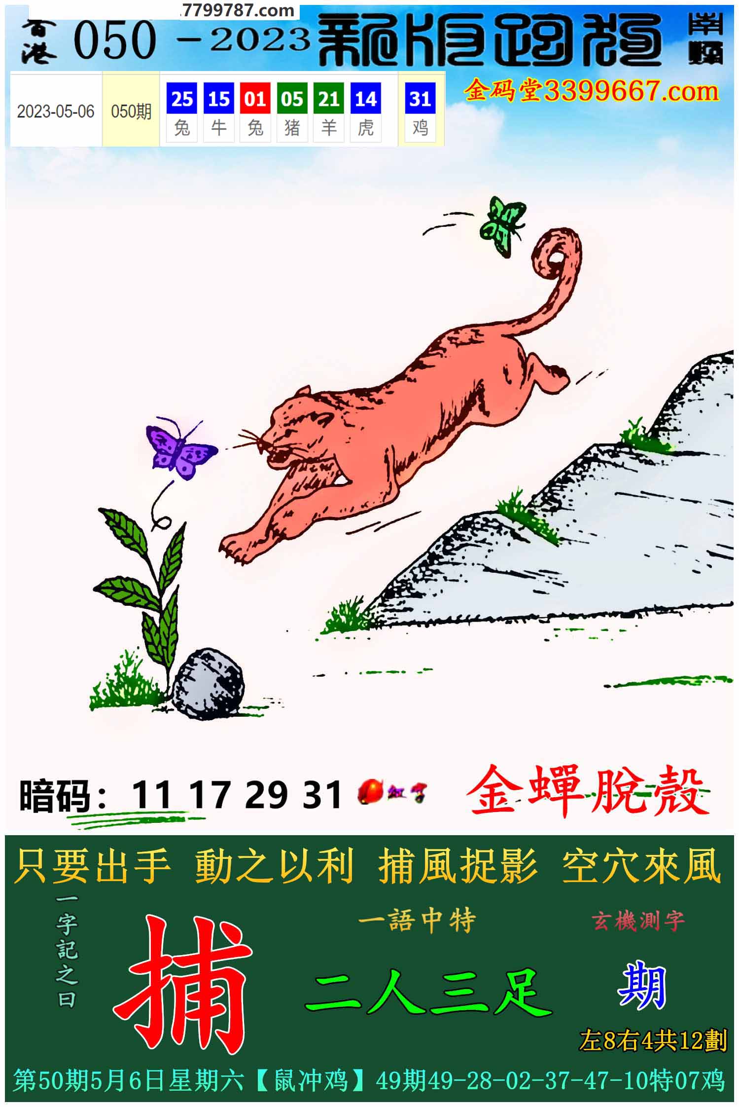 014期:新版跑狗一字記之曰【捕】 玄機測字:【恥】