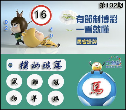 132期正版彩图挂:16 爆:马 挂牌成语:朴讷诚笃 挂牌出肖:鼠鸡龙狗羊猴