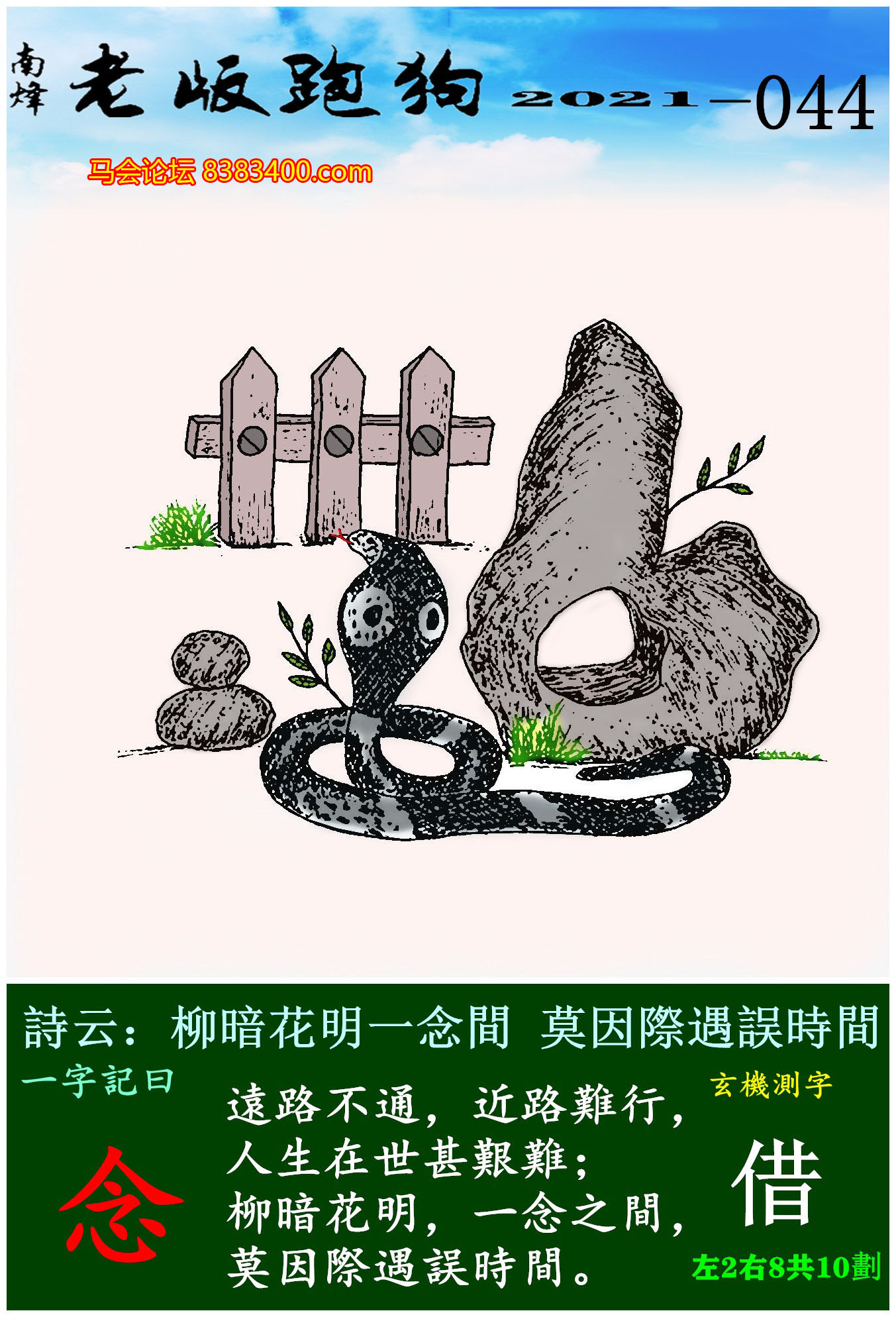 主题 : 044期老版跑狗一字記之曰:【念】玄機測字:《借》