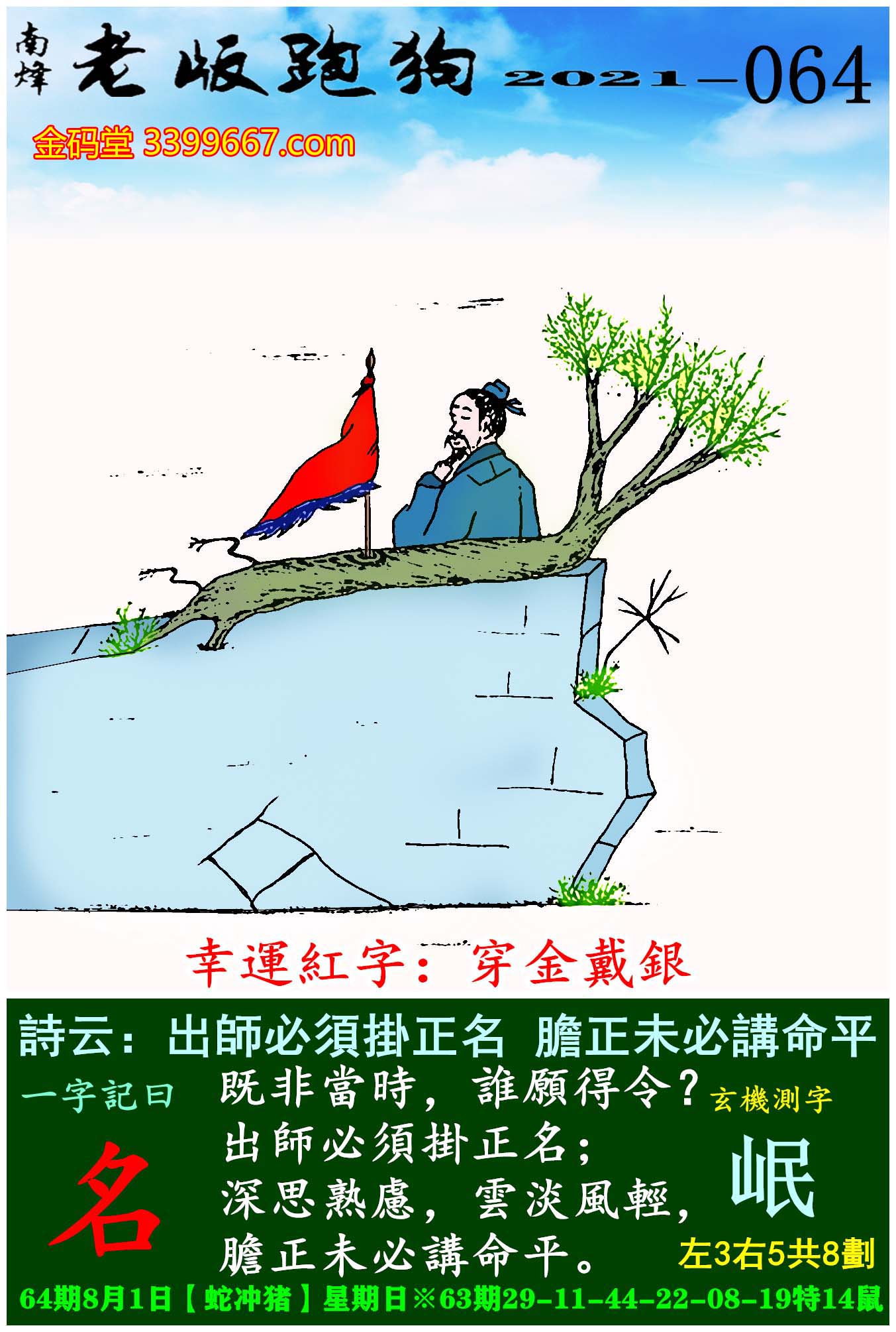 064期老版跑狗一字記之曰:【名】玄機測字:《岷》