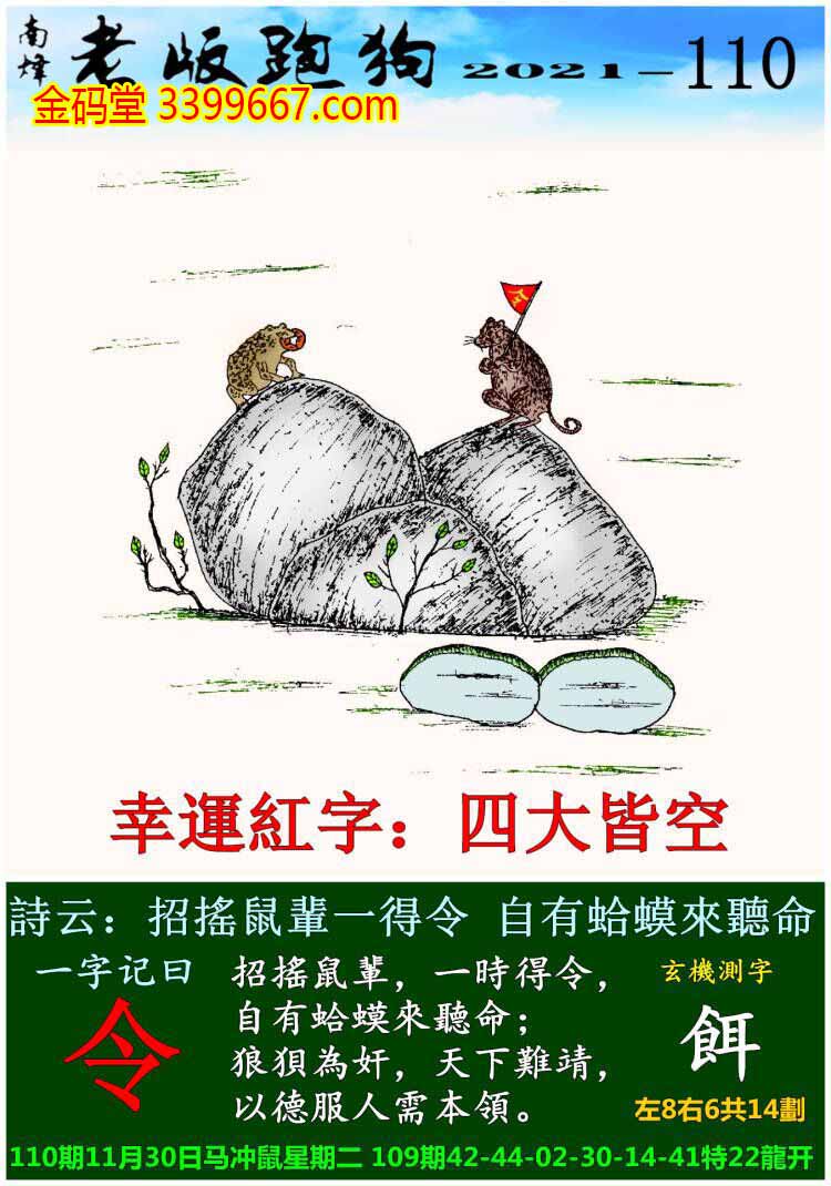 110期老版跑狗一字記之曰:【令】