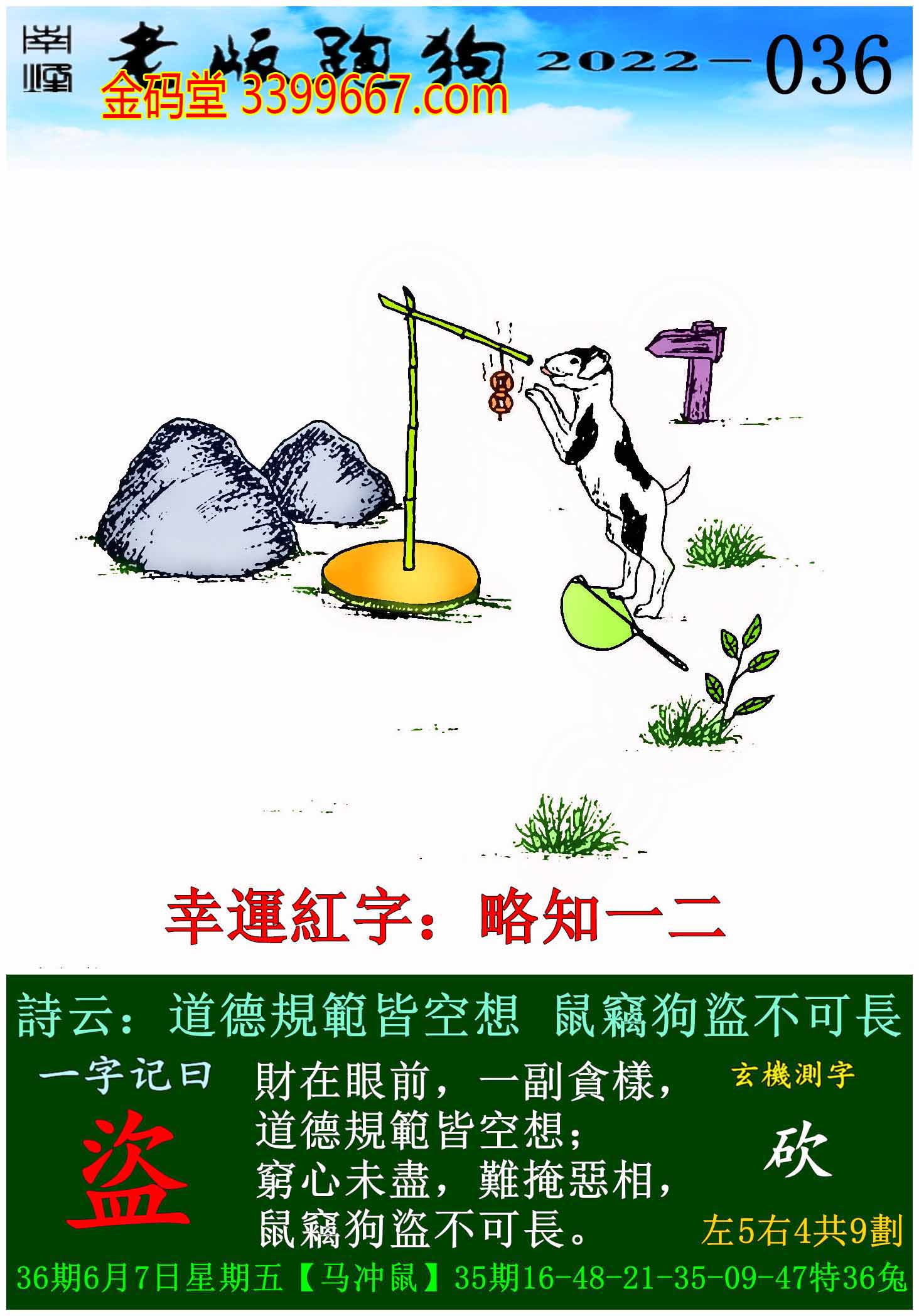 036期老版跑狗一字記之曰:【盜】