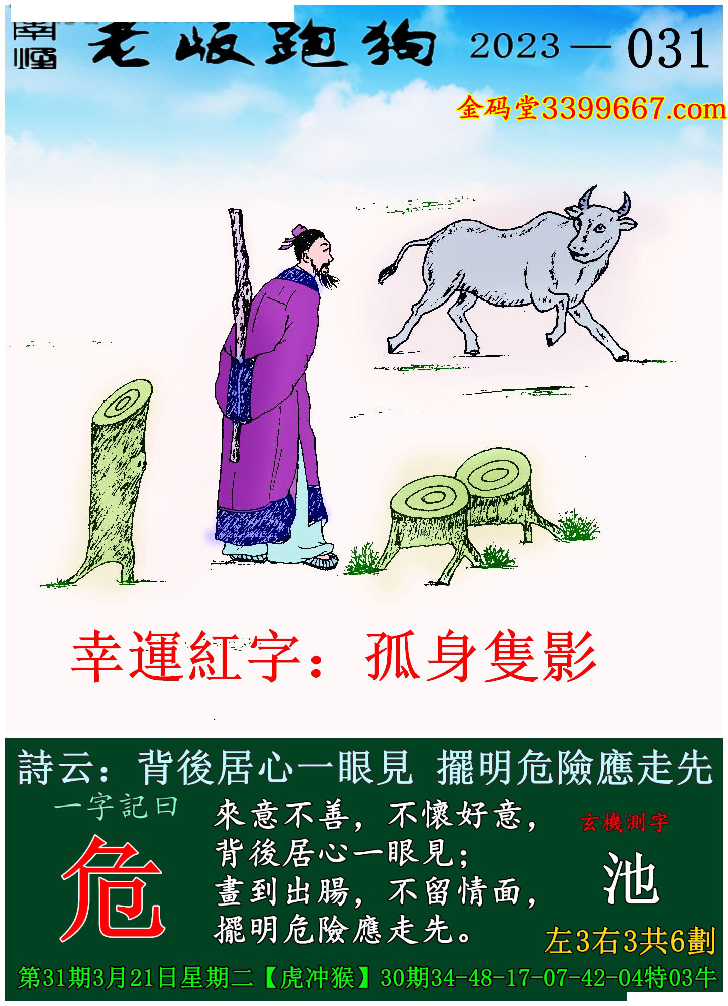 主题 : 031期老版跑狗一字記之曰:【危】玄機測字:《池》