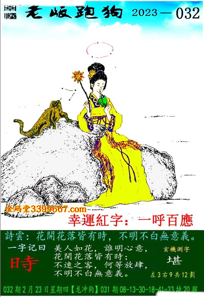032期老版跑狗一字記之曰:【時】 玄機測字:《堪》