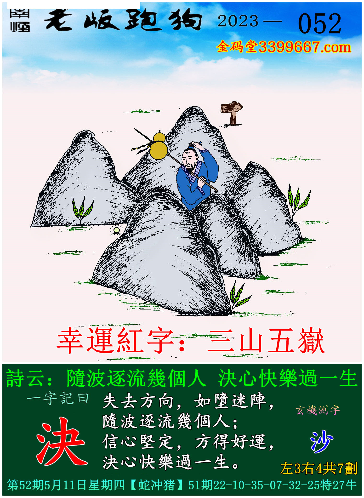 主题 : 052期老版跑狗一字記之曰:【決】玄機測字:《沙》