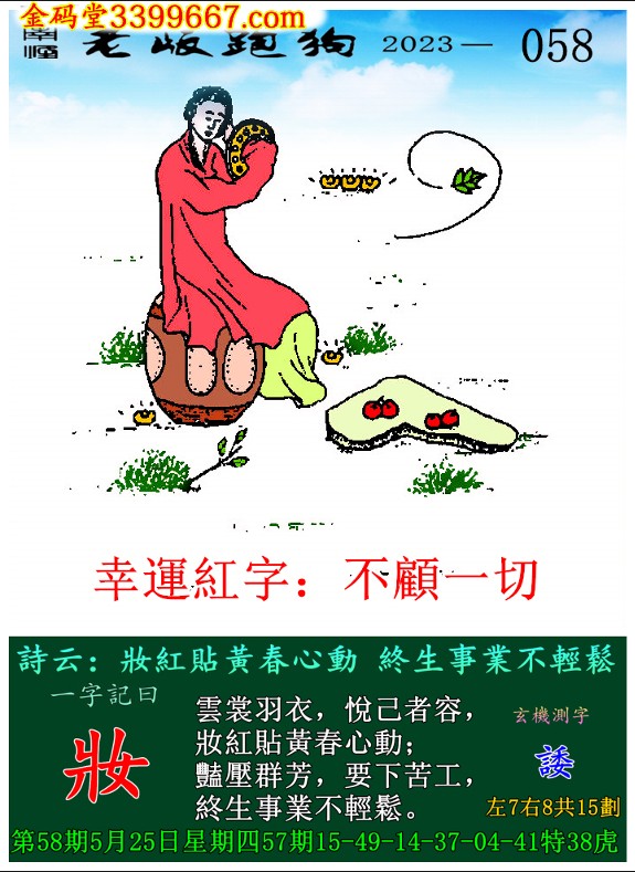 主题 : 058期老版跑狗一字記之曰:【妝】 玄機測字:《諉》