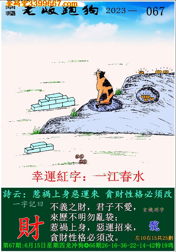 067期老版跑狗一字記之曰:【財】