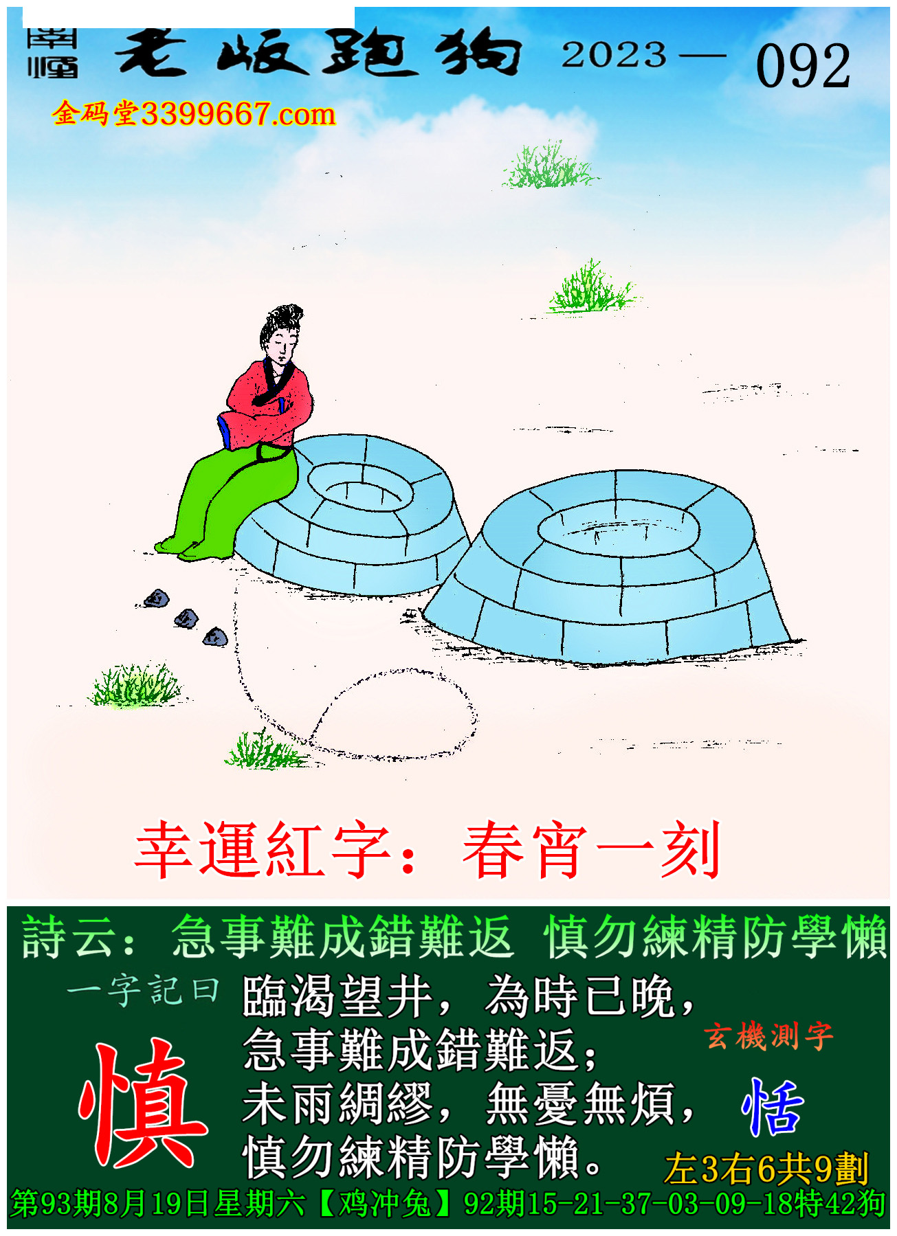 093期老版跑狗一字記之曰:【慎】玄機測字:《恬》