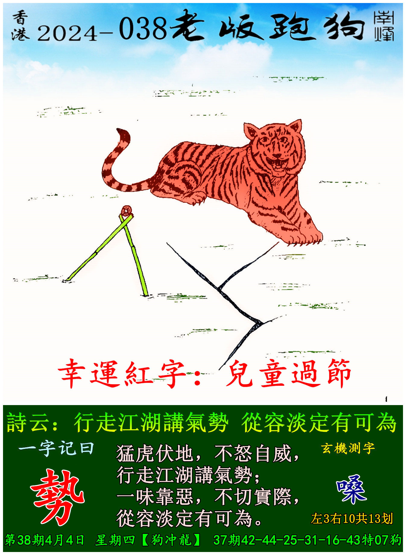 038期老版跑狗一字記之曰:【勢】 玄機測字:《嗓》