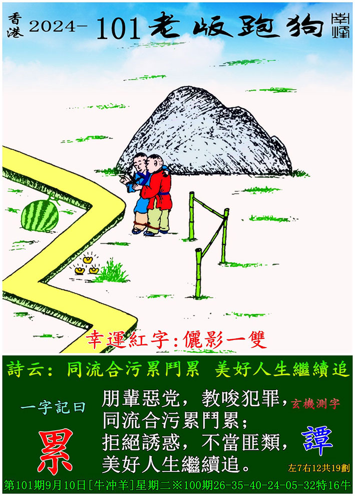 101期老版跑狗一字記之曰:【累】 玄機測字:《譚》