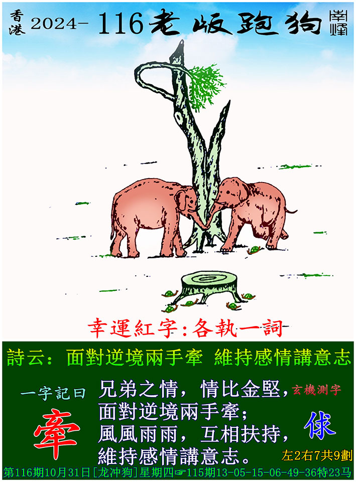 主题 : 116期老版跑狗一字記之曰:【牽】 玄機測字:《俅》