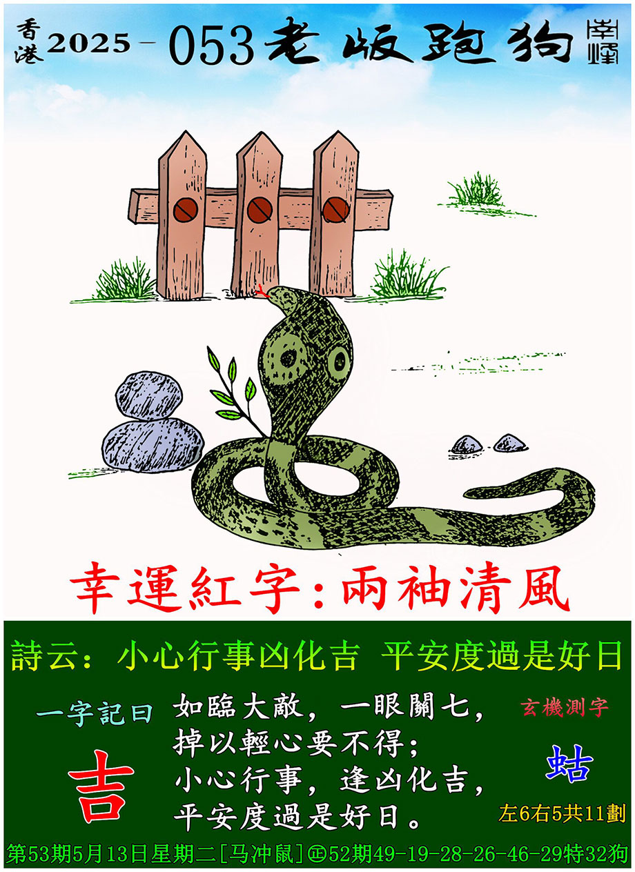 053期老版跑狗一字記之曰:【吉】