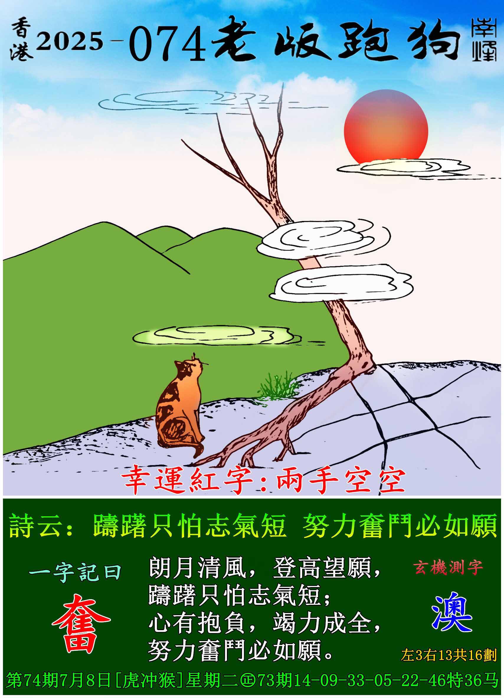 074期老版跑狗一字記之曰:【奮】