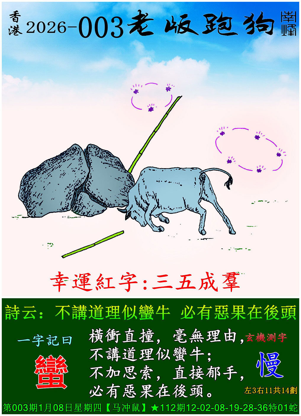 主题 : 003期老版跑狗一字記之曰:【蠻】 玄機測字:《慢》