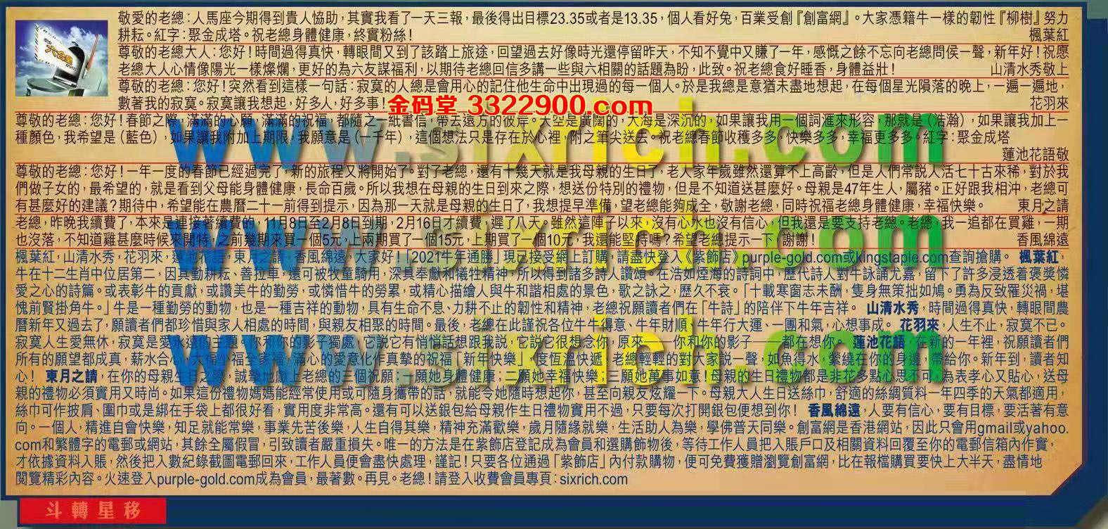 【1】.敬愛的老總:人馬座今期得到貴人協助,其實我看了一天三報,最後得出目標23.35或者是13.35 個人看好兔,百業受創「創富網」。大家憑籍牛一樣的韌性「柳樹」努力耕耘。紅字:聚金成塔。祝老總身體健康,終實粉絲! 楓葉紅